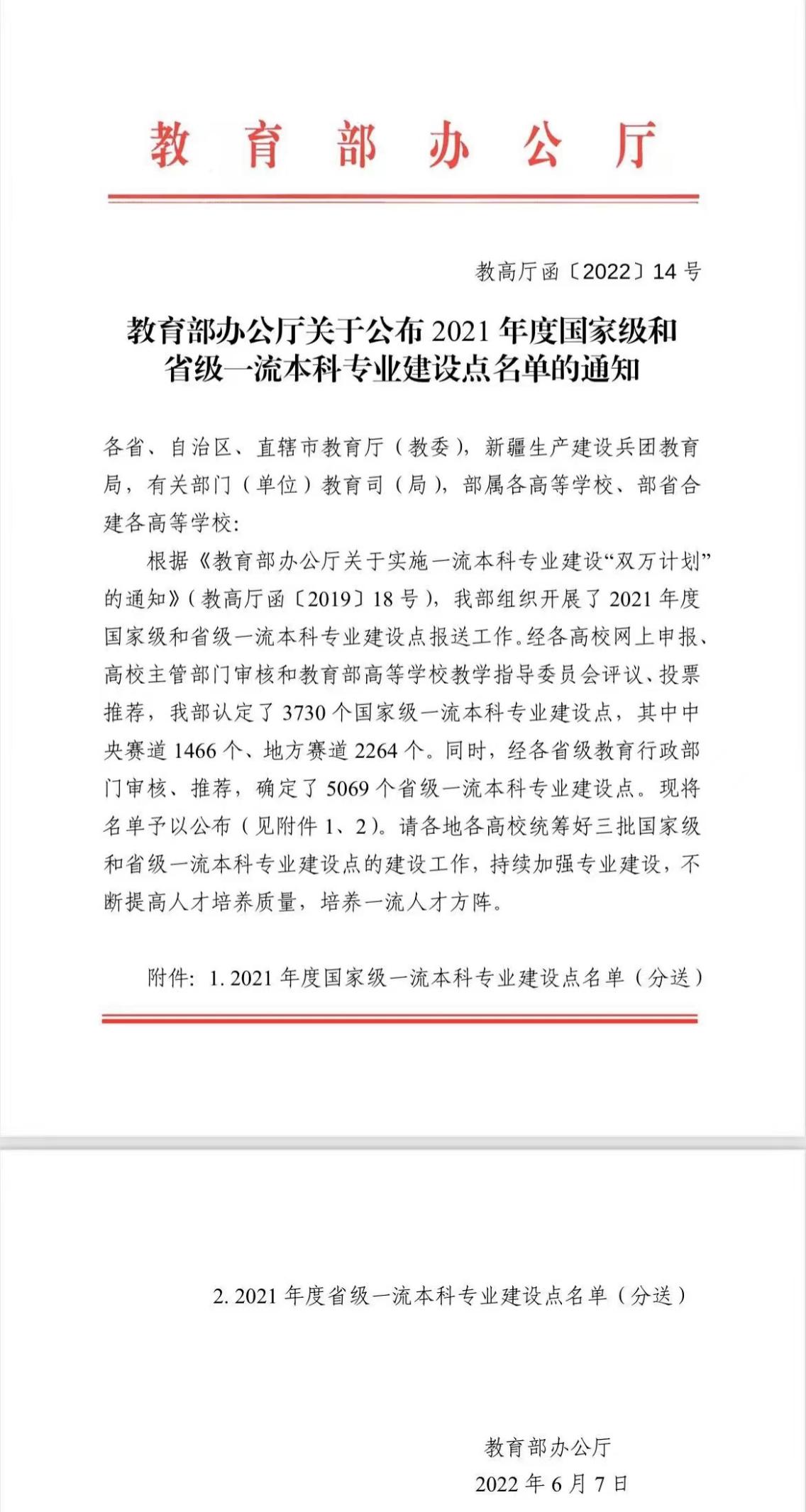 2021年度学校共推荐10个专业申报国家级一流本科专业建设点,获批6个。至此,365bet官网娱_bt365体育在线_365bet投注官网共有13个国家级一流本科专业建设点,12个省级一流本科专业建设点。