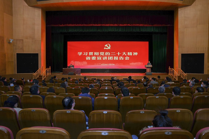 李立峰以《奋进伟大征程、谱写时代华章》为题,从深刻领会党的二十大的主题和主要成果、新时代10年的伟大变革、开辟马克思主义中国化时代化新境界的历史责任、中国式现代化的丰富内涵、全面建设社会主义现代化国家的目标任务、以党的自我革命引领伟大社会革命的重大要求、“三个务必”的谆谆教导和团结奋斗的时代要求、“两个确立”的决定性意义和实践要求等方面进行了系统阐释和深入解读。