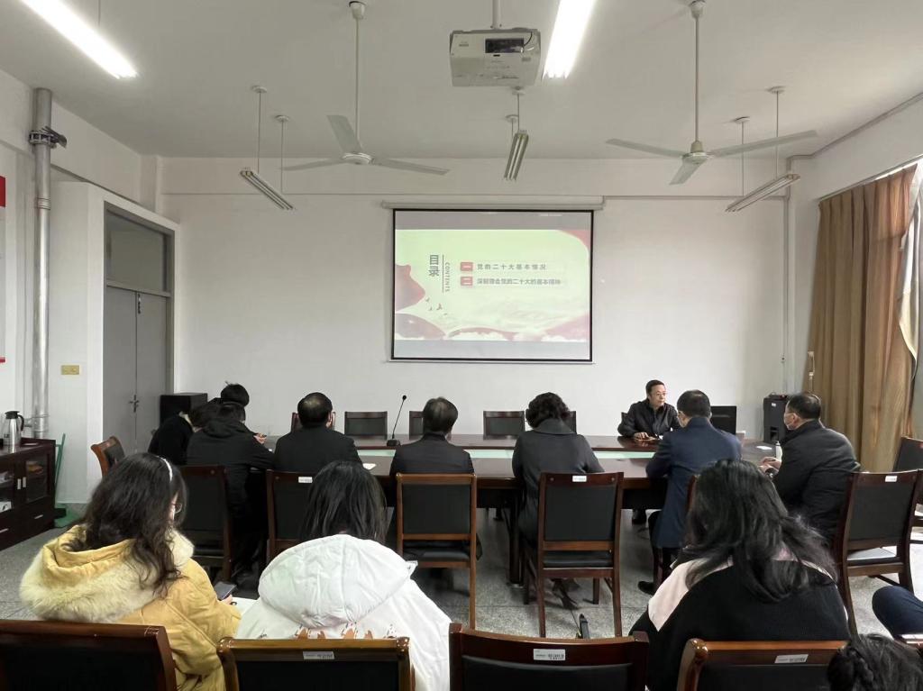 邢晓平从深刻把握党的二十大的背景、主题,深刻把握过去5年的工作和新时代10年的伟大变革,深刻把握开辟马克思主义中国化时代化新境界的历史责任,深刻把握以中国式现代化全面推进中华民族伟大复兴的历史任务,深刻把握全面建设社会主义现代化国家的目标任务,深刻把握以伟大自我革命引领伟大社会革命的重要要求,深刻理解当前所面临的风险挑战,增强底线思维和忧患意识,在党的二十大精神的指引下团结奋斗等七大方面进行了深入解读和阐释。她强调,全体教职员工要认真学习领会党的二十大精神,领悟贯彻党的二十大精神的核心要义、实践要求,始终牢记“三个务必”,“六个坚持”,为全面推进中华民族伟大复兴的历史任务贡献力量。在党的二十大精神的指引下,广大干部师生要以“自信自强,团结奋斗”为核心理念,以执着的信念、优良的品德、过硬的本领,担负起时代重任。