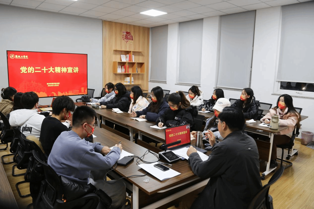这是经管学院党的二十大精神巡讲团面向大学生的第一场宣讲活动,后续将通过思政课堂、党日活动、团日活动、微视频等形式,向全院三千多名大学生全面宣传党的二十大精神,鼓舞新时代大学生遵循党的二十大战略部署,学好本领为中华民族伟大复兴贡献智慧和力量。
