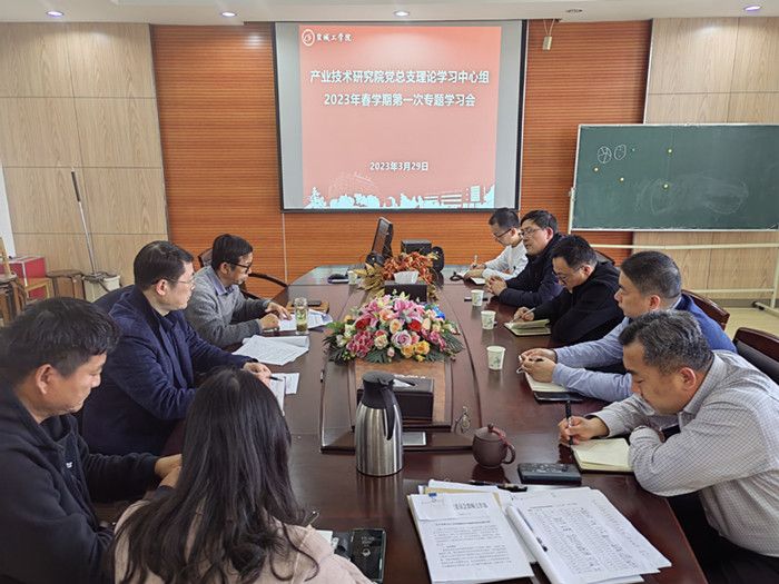 3月29日下午,在北校区知达楼AE209会议室,产业技术研究院党总支理论学习中心组举行2023年春学期第一次专题学习会。会议由研究院党总支书记、院长严金龙主持,院党总支理论学习中心组成员参加。