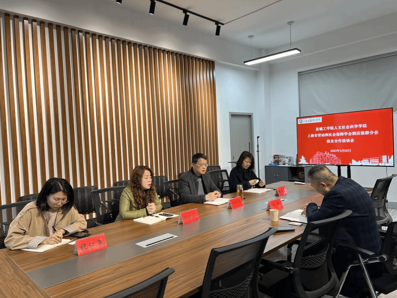 4月3日下午,在南校区仁和楼A302会议室,上海市劳动和社会保障学会酒店旅游分会长杨武受邀至人文学院洽谈校企合作事宜。人文学院院长周晓燕主持会议,党总支书记何登溢、党总支副书记姚爱华、酒店系主任祝仁革参加。